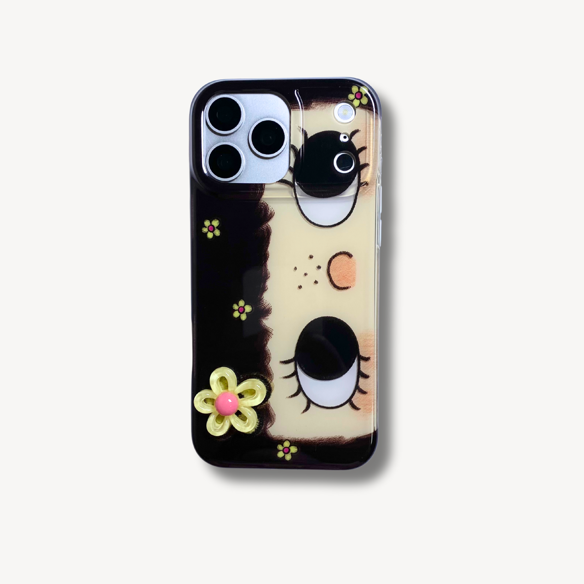 Add a dash of playful mystery to your daily tech! Featuring a charming, hand drawn character peering out with curious eyes, this case is the ultimate conversation starter. The contrast of the deep, midnight black "hair" against the soft cream face creates a bold, artistic look that feels both retro and modern.